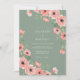 Uma delicada cascata de flores de pêssego e flores semelhantes à anêmona margeia este design, colocado contra um fundo de sage suave. O efeito de aquarela pictórica dá à cena uma suavidade romântica e uma qualidade aérea e etérea.