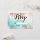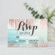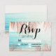 Palmeira moderna falsa simples em rosa dourado com tipografia simples RSVP casamento, um tema de casamento trendy e tropical fotografia de praia com folha de palmeira.