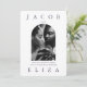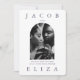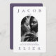 O convite para casamento de fotos violetas elegantes apresenta um layout moderno com tipografia ousada e um retorno violento do convite editável para sua cor personalizada!