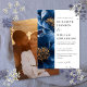 Este convite de casamento floral azul marinho e dourado elegante pode ser personalizado com suas informações em tipografia moderna e uma foto especial no verso. Projetado por Thisisnotme©
