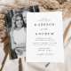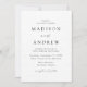 Convite de casamento minimalista e moderno com os detalhes do seu casamento em letras pretas com destaques em caligrafia. O fundo branco apresenta manchas pretas sutis para um design de convite de casamento único. O verso do convite de casamento moderno exibe sua foto de noivado vertical. Projetado para coordenar com nossa coleção de casamento Modern Elegance.
