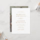 Convites de casamento elegantes com seus nomes e detalhes de casamento em letras douradas com fundo branco. Um roteiro de caligrafia moderno completa o olhar desse convite de casamento de ouro-chico. O convite reverte para exibir sua foto de noivado favorita. Este simples convite para casamento de fotos é perfeito para casamentos formais e casuais de qualquer época.