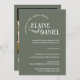 Anuncie seu dia especial em estilo com este romântico convite de casamento verde apresentando uma foto de casal alegre e uma tipografia elegante. Este cartão de casamento personalizável destaca os nomes da noiva e do noivo junto com a data do casamento, os detalhes do local e uma mensagem de convite calorosa. Perfeito para os casais modernos que buscam uma forma na moda, mas pessoal, de convidar os entes queridos para sua celebração. Totalmente editável e ideal para impressão a pedido, este design faz uma manutenção memorável e adiciona um toque pessoal à sua coleção de papelaria de casamento.