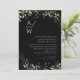 Entra num mundo de encantamento com o nosso convite de casamento preto e monograma branco, perfeito para o teu casamento de primavera botânico. Adorado com eucalipto verde sábio e sotaques dourados, este convite expele elegância e capricho moderno. Imaginem passear por um jardim de verão mágico, rodeado pelos sons suaves da natureza. A design captura sem esforço o charme rústico do outono com suas matizes verdes claras, evocando a beleza da estação em mudança. Com um toque de sofisticação minimalista e um clássico talento boêmico, os detalhes da folha de ouro falso e sombreado somam um toque de glamour e romance. Completado com uma sensação graciosa de conto de fadas, este convite exumenta a classe e mostra o esplendor natural do outono. Por favor, sinta-se à vontade para nos contactar com quaisquer perguntas sobre o design, e deixe-nos ajudá-lo a fazer o casamento dos seus sonhos.
