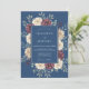 Convite Casamento com Grinalda Floral Azul Escuro
