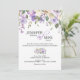 Basta design de buquê floral rústico simples e elegante em cor d'água (cor d'água) verde em verde, lavanda, roxo, violeta, lilás, cor-de-rosa pincel, pêssego, rosas de flor branca / pénia em fundo branco e letras negras. Concursos de casamento deliciosos (de pais) para aquele tema de primavera ou verão. Cartões de fora perfeitos. A parte de trás da carta tem noiva e nomes de noivos. Consulte a coleção para itens correspondentes!
