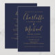 Convite Casamento com Letra Chic em Azul Marinho e Dourado