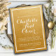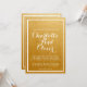 Adicione um toque moderno e elegante ao seu convite de casamento com um estilo de caligrafia de letra swash em um fundo metálico dourado com tipo e borda sobrepostos em branco.