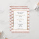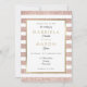 Convite de casamento elegante com brilho dourado rosa e listras brancas, apresentando letras elegantes em dourado e preto. Personalize com as informações do seu dia especial de casamento em texto moderno. Criado por Thisisnotme©