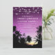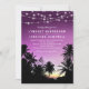 Convite Casamento com Luzes da Palmeira do Pôr do Sol Roxo