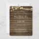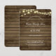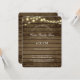 Cartão de "detalhes" com madeira de celeiro country vintage e luzes de cordão cintilantes para complementar nossa escada de madeira rústica e letras de amor, conjunto de convite de casamento.