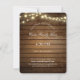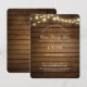 Cartão de "detalhes" com madeira de celeiro country vintage e luzes de cordão cintilantes para complementar nossa escada de madeira rústica e letras de amor, conjunto de convite de casamento.