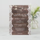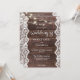 Envie aos seus convidados um lindo convite de casamento graças a este convite de madeira e renda com luzes de corda. Ótimo para casamentos no campo e no quintal.