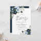 marinho de aquarelas flores azuis e azuis-claras com uma estrutura dourada e um texto elegante. As cores e o texto podem ser personalizados.