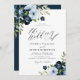 Convite casamento com marinho e guião floral azul claro