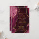 Celebre seu dia especial com este convite de casamento elegante, apresentando um design de mármore de ágata vermelho burgundy acentuado com detalhes luxuosos em dourado. O fundo ousado inspirado em geodos cria uma aparência dramática e sofisticada, perfeita para casamentos de outono e inverno, celebrações formais ou eventos noturnos glamorosos. A tipografia limpa e moderna mantém seus detalhes fáceis de ler, ao mesmo tempo em que complementa a textura orgânica da ágata. Ideal para casais que buscam um convite elegante e único, este design combina a estética da pedra natural com um layout refinado e contemporâneo. Personalize facilmente todo o texto para adequar aos detalhes do seu casamento e crie uma bela primeira impressão para seus convidados.