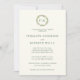 Este convite de casamento minimalista apresenta suas iniciais enquadradas em uma coroa floral de cor d'água em rosa e verde.