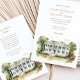 Anuncie seu casamento com a elegância do Sul usando esta bela suíte de convites, apresentando uma charmosa ilustração aquática do histórico Museu da Casa de Kaminski em Georgetown, Carolina do Sul. A frente do convite apresenta uma visão pitoresca da bela casa branca, enquadrada por árvores verdes exuberantes, e uma dica de um portão de tijolo vermelho. A cena é renderizada em um estilo de aquarela artístico suave, evocando um senso de graça sulista, tradição e romance. O reverso, projetado para "Os Detalhes Mais Finos", continua o tema elegante com o mesmo icônico Museu da Casa de Kaminski, permitindo uma apresentação coesa. O estilo de aquarela suave empresta um sentimento romântico. É ideal para um casamento de temas sulistas, uma celebração de festas de jardim, ou para qualquer casal que procure uma estética clássica e refinada para o seu dia especial.