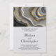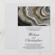 Um convite de casamento moderno e elegante. Com um design abstrato apresentando uma imagem que se assemelha a um geodo de ágata. Dourado, cinza, branco e preto se misturam formando ondas elegantes de cor. Perfeito para transmitir um ar de classe e elegância.