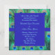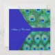 Convite de casamento quadrado com elegantes penas de pavão esmeralda verde, azul real e azul turquesa. Personalize com sua escolha de estilo de fonte e cor da fonte.