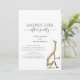Convite de casamento de recepção de fuga minimalista moderno e elegante, preto e branco com silhueta de galgo em ouro falso gótico único e escrita à mão simples.