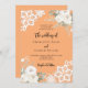 Para um casamento elegante e romântico. Um fundo cor de pêssego decorado com flores, rosas e rendas brancas. Personalize e adicione seus nomes e detalhes.