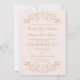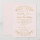 Um convite de casamento com retrato romântico com floreios de rolo ornamentado a ouro sobre um fundo rosa choque suave. O filigrana metálico quente contra o rosa delicado cria um visual feminino e elegante com caligrafia clássica e detalhes de data estruturados. Todo o texto é totalmente personalizável.