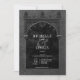 Traga seus convidados para um mundo de elegância escura e encantadora com nosso convite de casamento gótico. O fundo preto profundo, envelhecido, define a palco para um contraste impressionante, à medida que o texto branco em negrito emerge de intrincadas caixas de texto em preto. No auge deste convite, uma fronteira gótica tridimensional adornada com um arco gótico negro e regal captura a essência do mistério e do romance. O dorso é enfeitado com duas videiras interligadas de rosas pretas formando sutilmente um coração em torno de dois abraços, o que adiciona um toque de fascínio dramático. Liberte a magia e dê o tom para um dia de casamento inesquecível. Criado pela imprensa simplesmente de farmácia.