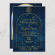 Ponha o tom para uma romântica celebração do tema celestial "Escrito nas Estrelas" com esta simples e elegante design de Convite para Casamento da Hora da Lua Azul, Dourada Estrela, Azul. Personalize facilmente o texto com seus detalhes de casamento, e adicione uma de suas belas fotos de noivado no fundo para criar um convite único para seu romântico casamento celeste.