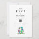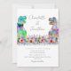 Para casais que amam dinossauros e querem celebrar seu grande dia com um rugido de diversão, este convite de casamento colorido e boêmio com tema de dinossauros e flores silvestres é a escolha perfeita! Com um hilário casal de noivos T-Rex em pé em um vibrante prado de flores silvestres em aquarela, o design se destaca com tons ousados de azul, rosa, roxo, laranja, amarelo e verde. É a combinação perfeita de charme lúdico e beleza natural, criando uma atmosfera caprichosa para sua celebração.