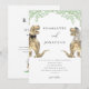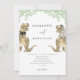 Para o casal que compartilha o amor por dinossauros, este convite de casamento temático de dinossauros divertido é a maneira perfeita de celebrar o seu grande dia! Com um brincalhão casal de noivos T-Rex, este design engraçado e peculiar combina o seu amor por dinossauros com elementos botânicos elegantes. O convite apresenta folhagem de eucalipto em aquarela, criando uma sensação fresca e natural que complementa lindamente a escrita moderna.