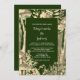 Bonito convite para casamento desenhado com fundo verde personalizado e cogumelos artísticos. Personalize adicionando seus próprios nomes, data e outros detalhes!