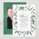 Convite de cerimônia de casamento online à distância com dólar de prata verde folha lavanda com tipografia manuscrita projetada para ser personalizada rápida e facilmente para os detalhes do seu evento. Ideal para qualquer tema ou casamento no jardim. A foto no verso é opcional. Se preferir removê-la, role até o final de "Personalize este modelo" e clique em "Editar Usando a Ferramenta de Design". Na Ferramenta de Design você pode editar, dimensionar, excluir ou mover qualquer texto ou elemento de design que desejar.