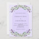 Um fundo violeta decorado com flores lavandas roxas, verde eucalipto e armação de arco. Personalize e seus nomes e detalhes.