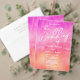 Celebre seu dia especial com este maravilhoso convite de casamento em aquarela apresentando um vibrante gradiente inspirado no sol, de rosa, laranja e amarelo. A elegante escrita branca acrescenta um toque romântico, Perfeito para casamentos ao ar livre, de verão ou de destino, esse convite é artístico e moderno. O texto personalizável permite que você personalize os detalhes para combinar o tema do casamento sem esforço.