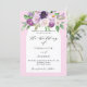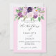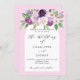 Fundo rosa e quadro de arco branco, decorado com flores rosas e roxas. Personalize e seus nomes e detalhes.