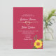 Moderno - retrô, boho, convite de casamento cor-de-rosa floral, magenta com corda de ouro falso, monograma de volta e foto do casal.