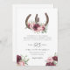 Buquê maravilhoso de burgundy, mauve e flores cor-de-água cor-de-rosa decoram duas ferraduras neste belo convite de casamento do país rústico com texto elegante e formal. Casamento floral cor-de-rosa.