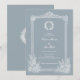 Defina um tom refinado e romântico para o seu dia especial com este convite de casamento elegante emoldurado em azul poeirado vintage, apresentando uma delicada borda botânica em linha branca, uma moldura decorativa sofisticada e um monograma personalizado no centro. Este design atemporal combina a elegância clássica do casamento com um toque de charme campestre francês, tornando-o a introdução perfeita para a celebração do seu casamento.