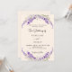 Celebre o seu casamento botânico elegante com este convite de lavanda coeso. O design apresenta ramalhetes de lavanda pintados à mão em aquarela formando uma delicada coroa em um fundo suave creme champanhe. É uma combinação perfeita para casais que realizam uma cerimônia de jardim no final do verão ou uma celebração de colheita de outono rústica.