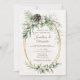O Elegante Winter Christian Wedding Inspirational Invitation retrata uma bela design de aquarela natural com bagas brancas, um cone de pinho e verde adornando um quadro oval dourado. Ele apresenta um verso das escrituras, "E os Dois se tornarão Um." Boa escolha para as férias e casamentos no inverno de Natal. Se há algo que você não vê ou deseja alterar, use o botão Chat nesta página para entrar em contato comigo._