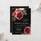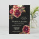 Convite de casamento cristão com cores elegantes de outono retrata um belo design botânico floral em aquarela com flores românticas laranja queimada, branca e rosa e folhagens em um fundo preto. Apresenta uma introdução com citação inspiradora, "Deus levou duas vidas para tomar um caminho". Se você deseja alterações ou se há algo que você não vê, por favor entre em contato comigo pelo botão de bate-papo nesta página.