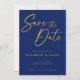 Casamento de estilo manuscrito azul moderno Salve o cartão de convite de Data. Este design apresenta uma fonte de estilo de caligrafia grande que você pode alterar sua cor. Você também pode personalizar todos os detalhes e cores neste design Salvar a Data.