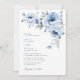 design de tema de casamento floral azul com uma elegante letra de caligrafia negra. O texto preto e outros recursos deste modelo de convite de casamento podem ser personalizados.