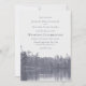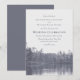 Este casamento vintage tranquilo da cena do lago de montanha, criado de uma das minhas fotografias pessoais de caiaque, tem uma fotografia antiga com uma imagem a preto e branco que foi pintada de azul e apresenta uma cena ao lado do lago sem incômodos com água levemente ripada, mas calma, refletindo árvores e estruturas rochosas distantes, perfeita para uma montanha, ao lado do lago ou à beira do rio - personalize os detalhes do seu evento em uma fundo de cinzas pálidas - por katz_d_zynes