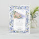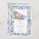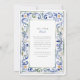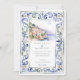 Traga seus convidados para as margens ensolaradas de Itália com este convite de casamento. Perfeitamente adequado para um casamento de destino, este design apresenta uma ilustração impressionante da aquarela de uma aldeia pitoresca de Amalfi, com edifícios charmosos a escorrer penhascos para se encontrar com o mar azul sereno. A cena é maravilhosamente enquadrada por uma intrincada fronteira inspirada pelos tradicionais azulejos italianos Majolica. Envolventes de aquarela deliciosos, pintados à mão em tons de azul clássico, verde-sábio e amarelo-mudo criam um quadro elegante e artístico. Combinar o panorama cênico e o padrão do azulejo do ornamentado evoca uma sensação de romance europeu eterno. Seus detalhes de casamento são apresentados em um sofisticado emparelhamento de fontes clássicas de serifa e escrita graciosa, completando este design verdadeiramente especial.