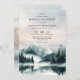 Este convite para o casamento mostra lindamente uma paisagem de montanha sangrenta, com florestas de pinheiros sujos e nevoeiro suave criando uma atmosfera de mistério e romance. Ideal para casais que amam a natureza, combina encanto rústico com design elegante. As matizes legal e a paisagem cativante evocam um senso de calma e intimidade, enquanto a refinada tipografia aumenta a sofisticação. Perfeito para aqueles atraídos para o silêncio da natureza selvagem.
