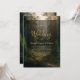 Um convite para o casamento da floresta de pinheiros beige e verde da camada escura elegante. Simplesmente personalize este convite com seus próprios nomes, detalhes e datas para fazê-lo por conta própria e enviar para a família e amigos.