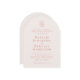 O convite de casamento "Kingston" é um design eterno que combina a simplicidade elegante com detalhes refinados. Apresentando um formato clássico de arco e um layout minimalista, este design destaca os nomes do casal em uma fonte sofisticada de serifa para obter o máximo impacto. Um monograma sutil no topo adiciona um toque pessoal, enquanto a tipografia limpa e espaçosa garante clareza e charme. Perfeito para casamentos formais e semiformais, a design do "Kingston" está disponível em várias maneiras para complementar qualquer tema ou paleta do casamento.