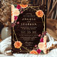 Elegante Boho Watercolor Vermelho e Laranja caem flores e design de folhagem com estrutura geométrica dourada, confete de brilho dourado e fundo de madeira russa